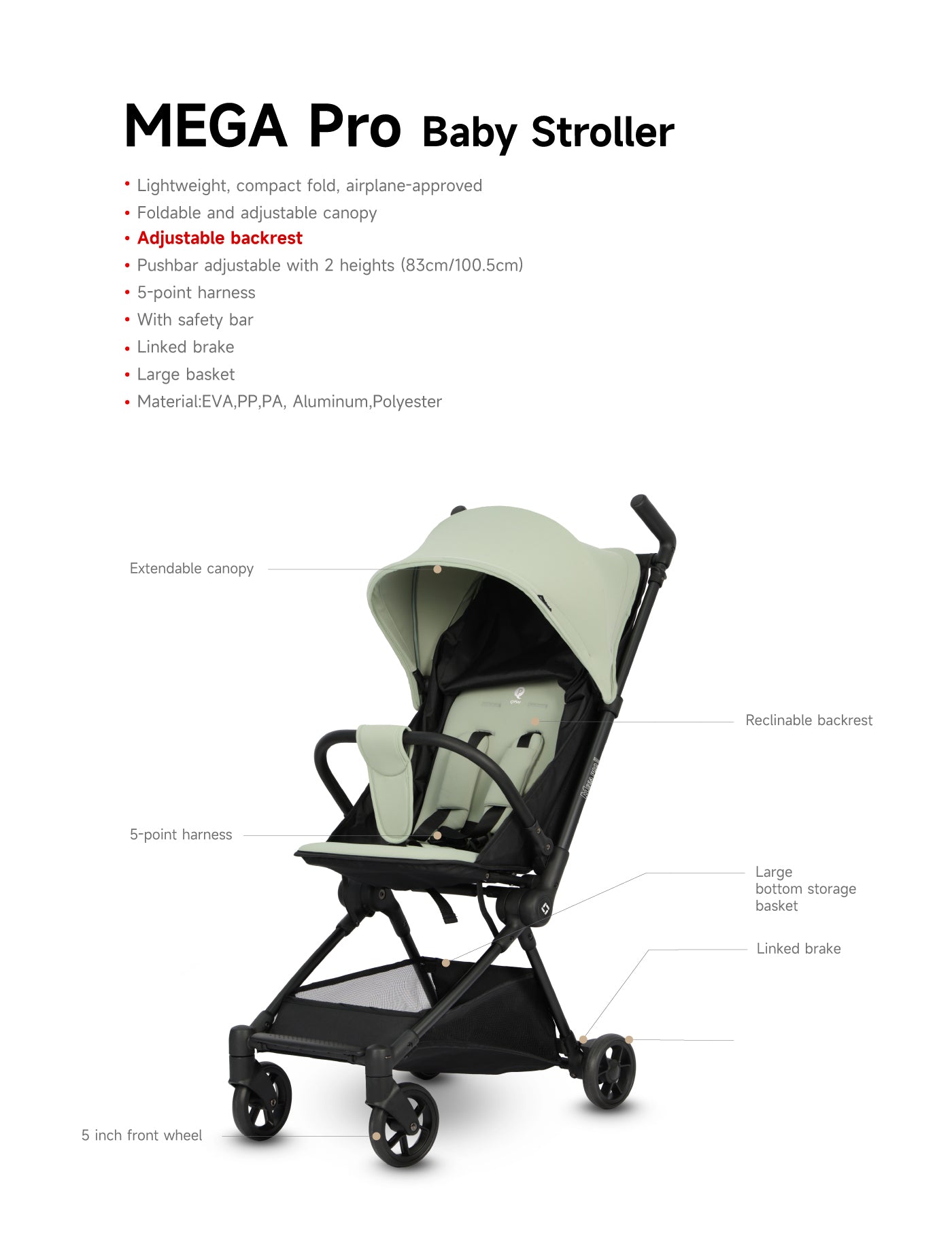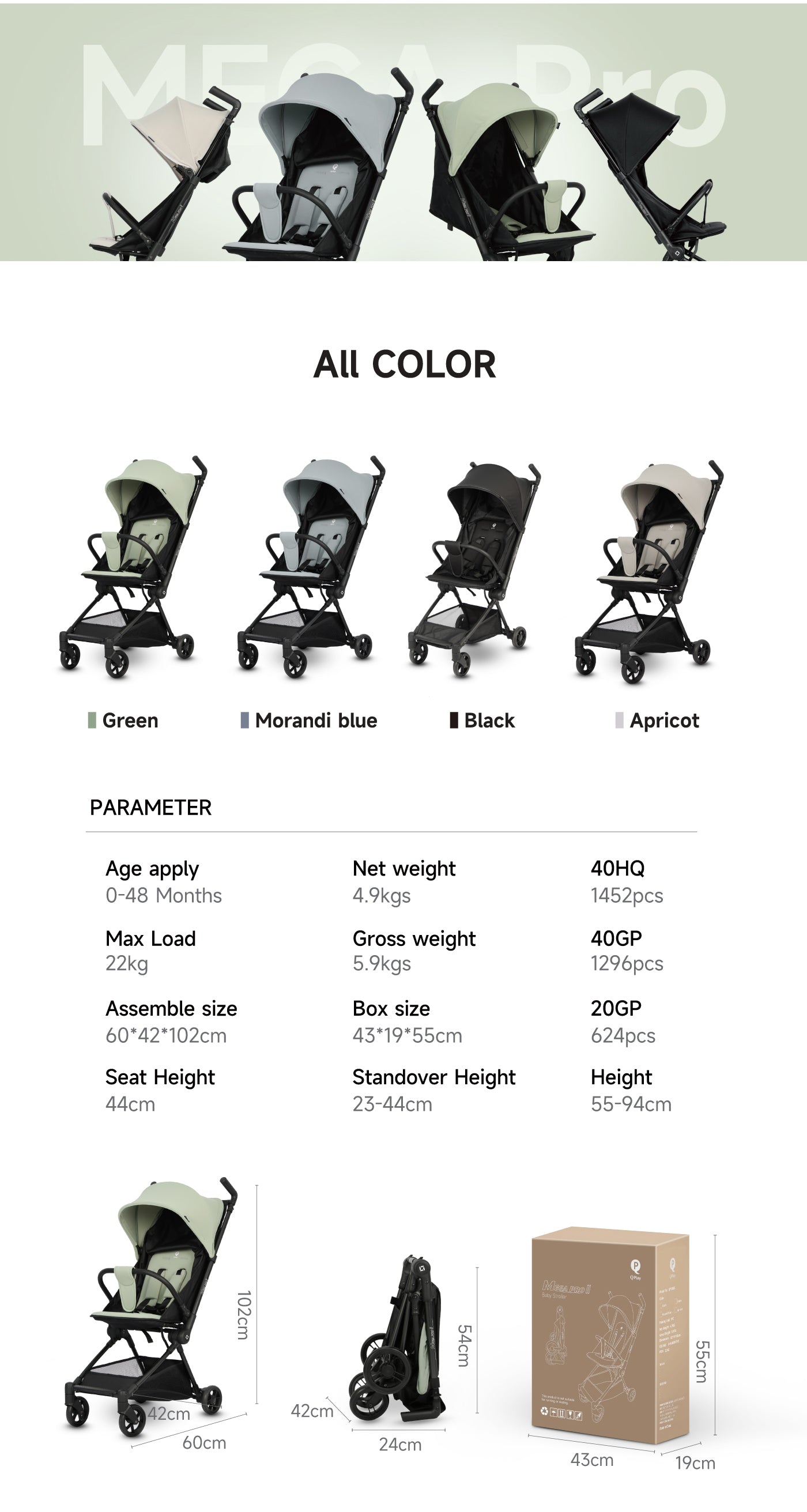 The Qplay Mega Pro Baby Stroller is a lightweight, compact, and travel-friendly stroller designed for modern families on the go. Suitable from newborn to 4 years (0–48 months), it combines German design, comfort-focused features, and easy folding for everyday use and travel.